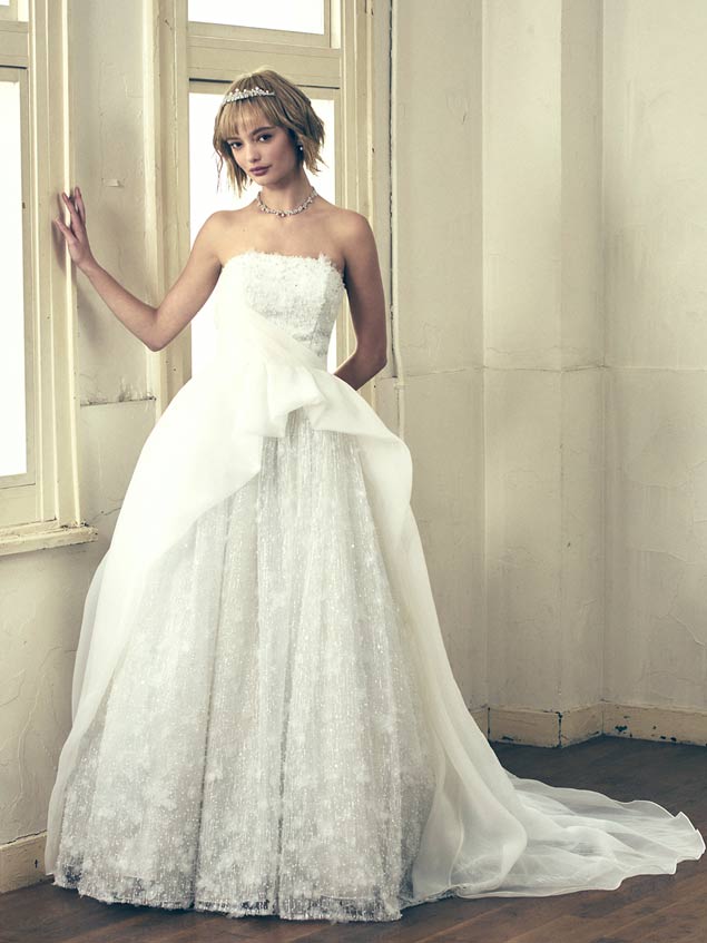 グリッターとミニフラワー加工を重ねた,アンテプリマならではのビジューレースが、控えめながらもしっかりと個性を主張します。